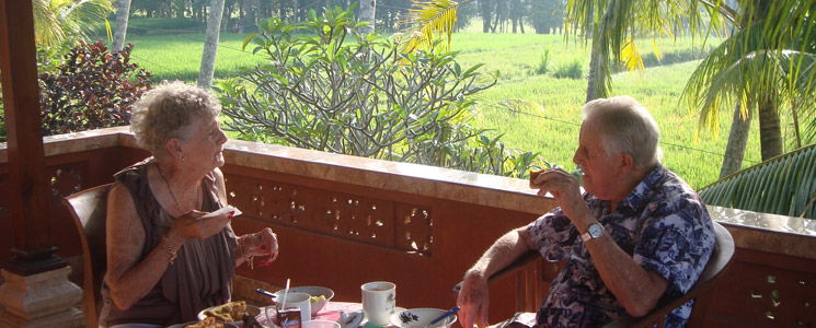 The room is large, bright and airy with a spacious tiled verandah overlooking the swaying palm trees alongside the rice paddies. There is an ensuite with a large bath tub, flush toilet, and the room also includes a refrigerator. Breakfast is included in the price of this budget accommodation, and if required, you can ask to buy your lunch and/or dinner from the family who operate the Guesthouse. It’s always tasty food!